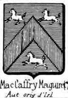 (Comtes) – Languedoc – (Rec. de nob. en France, sept. 1776). Orig. d’Irlande – D’argent à un cerf passant de gueules ramé d’or Cimier un bras tenant un lézard au naturel surmonté du Cri LAM LAIDIR ABOU (Vive le bras fort!) Légende SINNSIOR CLANNA MILEAD (Aînés des tribus de Milésius) Tenants deux anges ailés et chevelés d’or habillés de tuniques d’argent revêtus d’un manteau de pourpre chacun se couvrant la poitrine d’un bouclier le bouclier dextre aux armes de la province de Munster (qui sont d’azur à trois couronnes à l’antique d’or) et le bouclier senestre aux armes de la ville de Cork (qui sont d’or à un vaisseau à l’antique au naturel accosté de deux châteaux de gueules) Devise FORTIS FEROX ET CELER